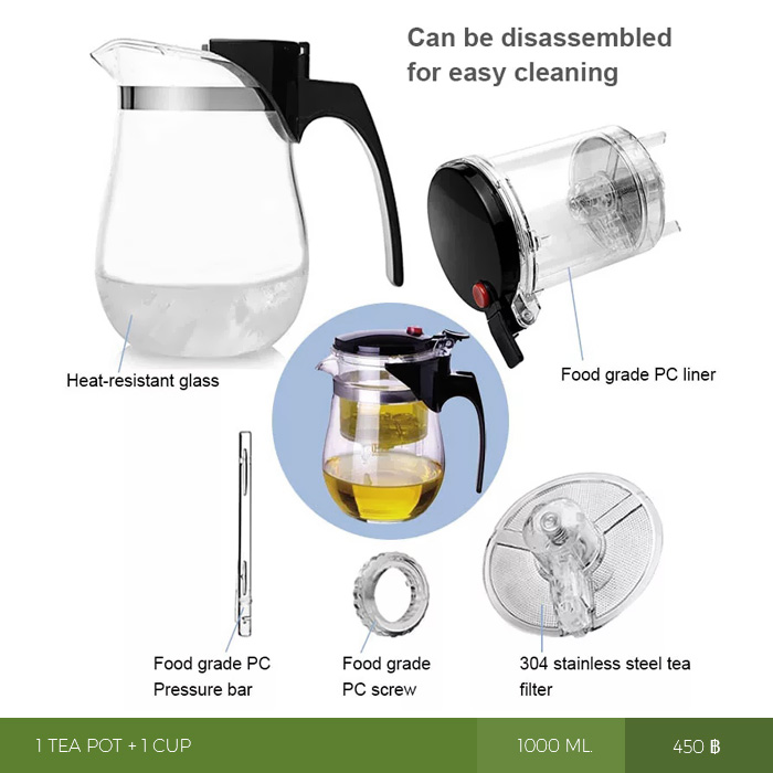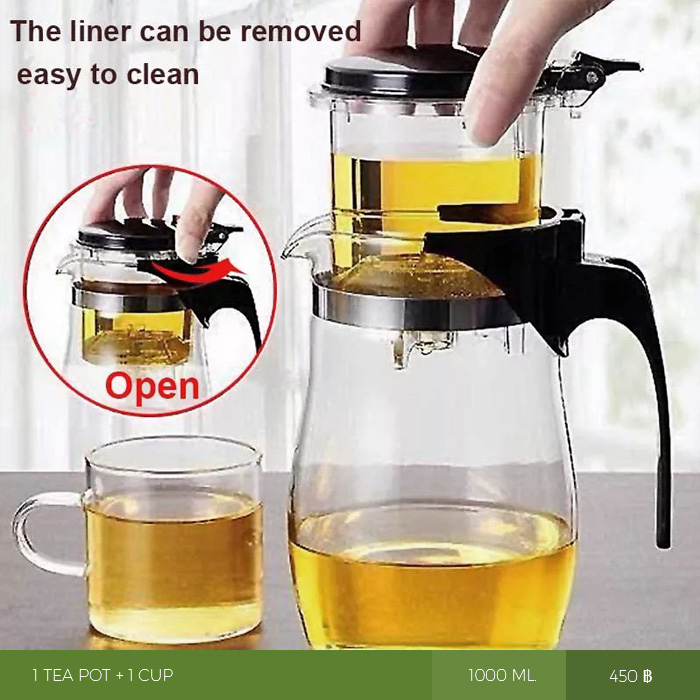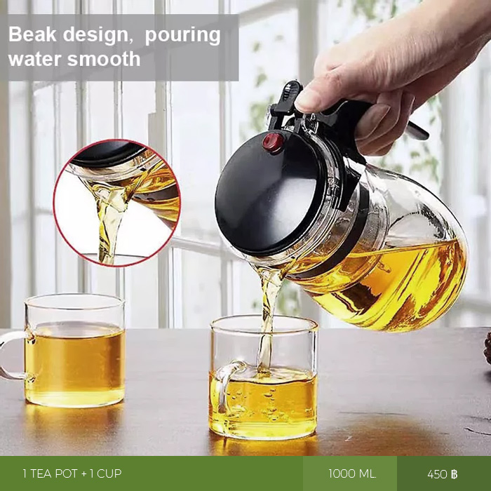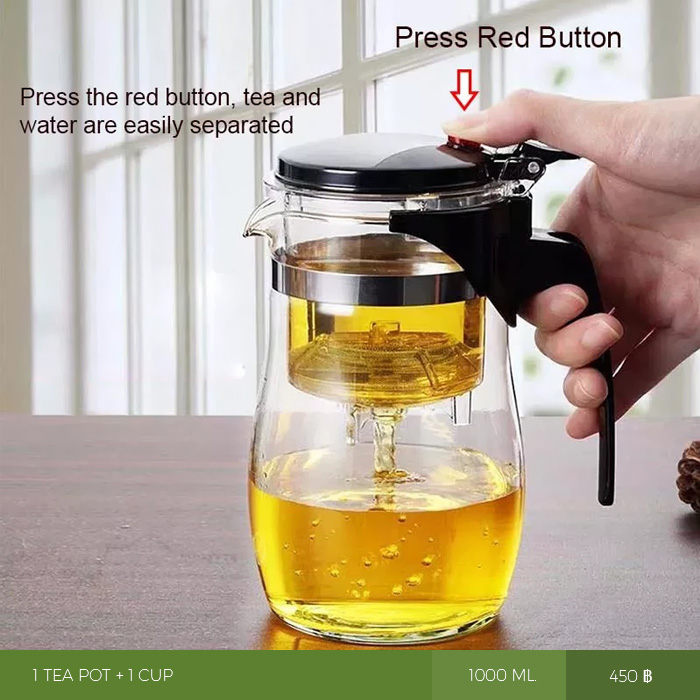 1. กาน้ำชาแบบมีปุ่มกด มีที่กรองใบชา 1000ml. 1 ใบ